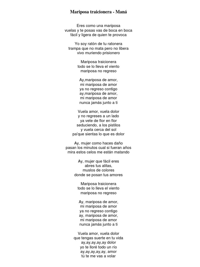 Letra De Mariposa Traicionera : Letra y acordes de guitarra.