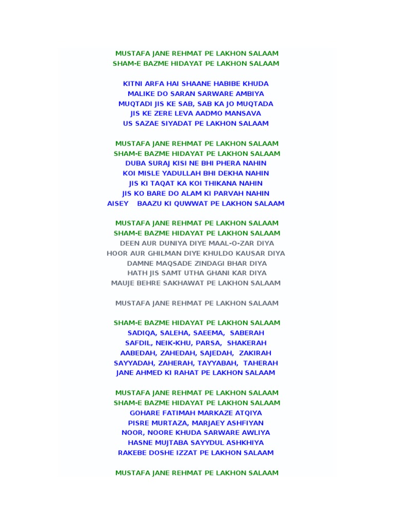 Mustafa Jane Rehmat Pe Lakhon Salam Lyrics : Kaash mehshar mai jab un ki aamad ho aur bhejain sab un ki.